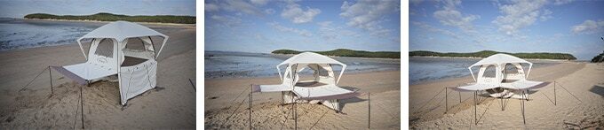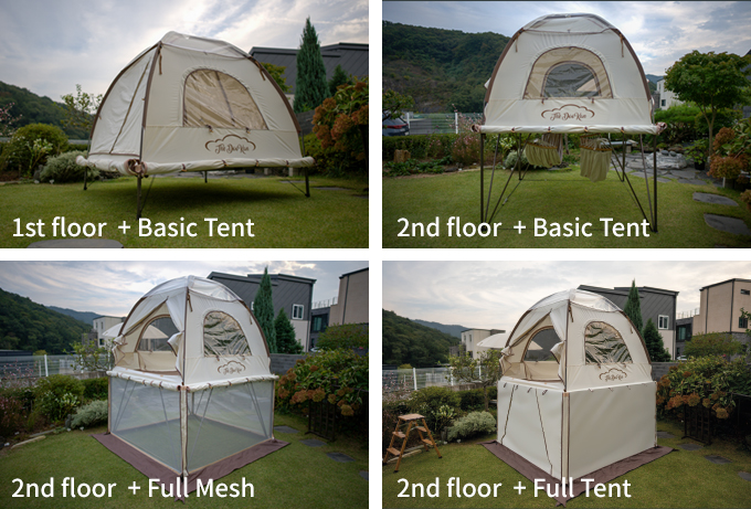 The awning on four sides of 1stfloor can be raised or lowered freely. With the awning raised, a full mesh can be installed on the entire 1st floor to block mosquitoes and insects.